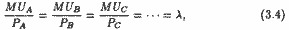 . Мы можем интерпретировать каждое из слагаемых этой суммы как индивидуальные предельные нормы замещения общественным благом, X, частного, Y, т. е. положить PA