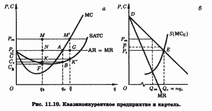 Как явствует из рис. 17.4, при любом уровне выпуска ниже q*X