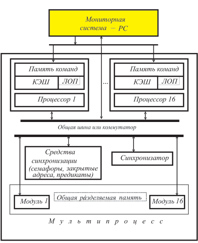 Сначала стало ясно, что вместо одной ЭВМ в систему управления необходимо встраивать несколько, решающих единый набор функционально связанных задач. Такой коллектив ЭВМ получил название вычислительного комплекса (ВК). Информационная взаимосвязанность задач потребовала применения средств оперативного обмена данными внутри ВК и средств синхронизации. Однако временные затраты на организацию взаимодействия ЭВМ в ВК (накладные расходы) оказались весьма высоки. Возникла идея использования взамен разделенной оперативной памяти (ОП), реализованной в ВК, общей (разделяемой) ОП, которая связывает несколько центральных процессоров. Проблема затрат времени на обмен оказалась решенной. Так зародилось понятие параллельной вычислительной системы (ВС).