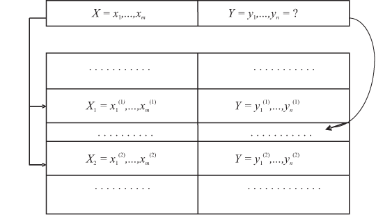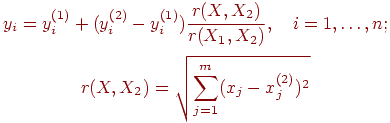), i = 1, ..., m. Таким образом, отыскивается "вилка", которой принадлежит входная ситуация. Тогда, опираясь на известные решения на границах этой вилки, необходимо выдать промежуточное решение для данной ситуации. Это можно сделать методом той же обобщенной интерполяции