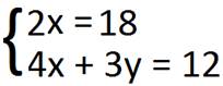 Заменим одно из данных нам уравнений системы, например первое, уравнением 2x = 18