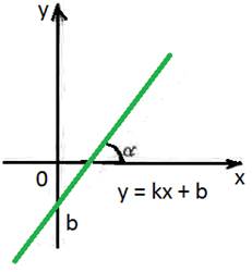 – угловой коэффициент, от которого зависит угол наклона графика функции. На рисунке видно, что k