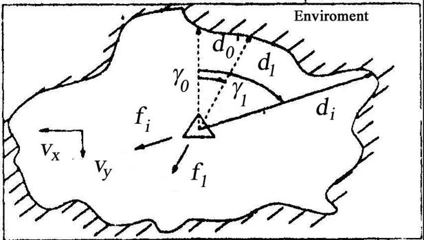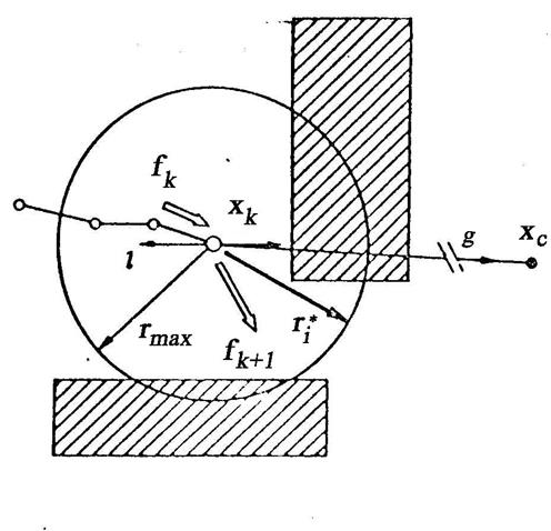 Наряду с указанным названием – метод потенциалов (Potential Field Approach), он имеет следующие названия: способа "искусственных потенциальных полей" (artificial potential fields), "полей виртуальных сил"(virtual force field-VFF), "гистограммы векторных сил" (vector field histogram-VFH) и др. Суть этого метода, напомним, заключается в том, что путь строится на основе решения специального "уравнения движения", в которое входят "сила притяжения к цели", "силы отталкивания от препятствий " и, возможно, некоторые другие "силы". При ссылке на этот метод в качестве пионерских упоминаются работы 1985 -1986 гг. [6,7]. Вместе с тем работа фирмы Хитачи по управлению МР, в которой использованы идеи "силового поля", выпущена в 1984 г. [9]. В [1] опубликовали результаты подобного исследования в ИПМ АН СССР в 1974г. Вместе с тем использование подобных физических аналогий при трассировке электронных плат уходит корнями вглубь 50-х годов [8]. Правда, вычислительные аспекты при этом имеют свою специфику.