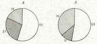 — ЭЭ. Незаштрихо-ванная часть — нейроны, не вовлекающиеся в обеспечение поведения. Штриховка пересекающимися линиями — нейроны первой подгруппы, параллельными — второй