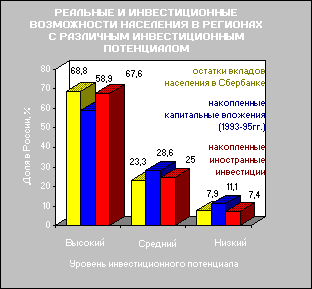 Рис. 13. Реальные инвестиции и инвестиционные возможности населения в регионах с различной степенью инвестиционного риска ………………………………………………40