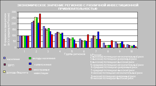 Рис. 12. Экономическое значение регионов с различной инвестиционной привлекательностью …………………………………………………………………………39