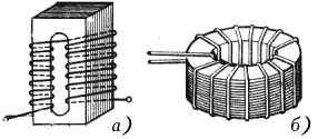 Рис.Общий вид стержневого (а) и кольцевого (б) магнитострикционного преобразователя.