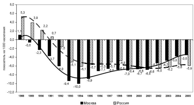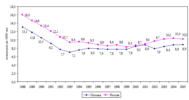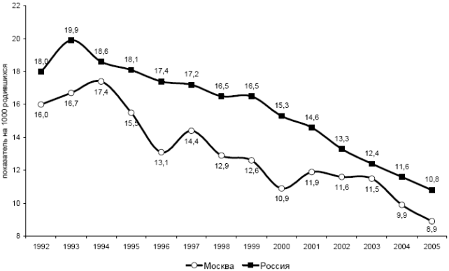 - оценка рождаемости в г. Москве по состоянию на 2005 год;