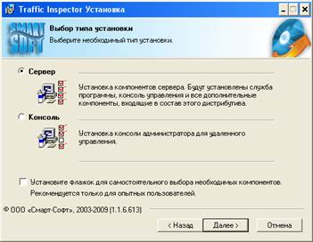 2. В пункте "Welcome to WinGate" пользователь выбирает тип установки: Клиент или Сервер (рис 2).