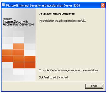 Вот и все, программа установлена. Как видно из примера ISA server устанавливается элементарно впрочем, как и все Microsoft программы.