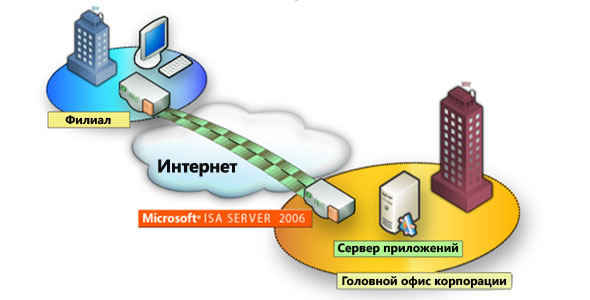 Организации могут использовать сервер ISA Server 2006 в качестве шлюза филиалов для подключения и обеспечения безопасности своих филиалов и эффективного использования пропускной способности сети. Благодаря сжатию HTTP – кэшированию содержимого, включая обновления ПО и возможности VPN-подключений между узлами, интегрированными с фильтрацией уровня приложений – сервер ISA Server 2006 упрощает безопасное расширение корпоративных сетей.