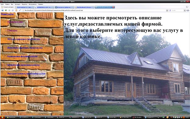 На этой страничке можно получить полную информацию о перечне услуг которые выполняет компания и подробно ознакомиться с каждой из них. Страница пастроена с помощью фреймов.Html-код приведён в приложении 2.