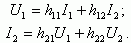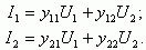 К входу четырехполюсника (1-1) подсоединен источник электрической энергии с задающим напряжением и внутренним сопротивлением . К выходным зажимам (2-2) присоединена нагрузка с сопротивлением . На входных зажимах действует напряжение , на выходных- . Через входные зажимы протекает ток , через выходных - .