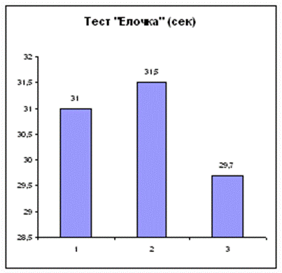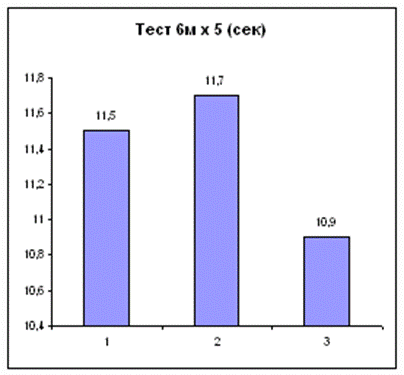 1. Преимущества развития физических качеств путем применения упражнений скоростно-силовой направленности (80%) в общем объеме физической подготовленности принесли положительные результаты практически во всех аспектах физической подготовки волейболистов. Скорость перемещений (тест 6м х 5м, "елочка") поддерживалась на высоком уровне, и улучшилась в среднем на 1,3 сек. или на 6,7%.