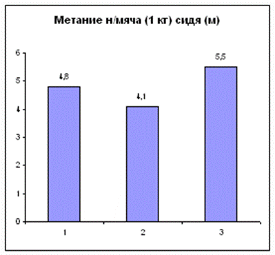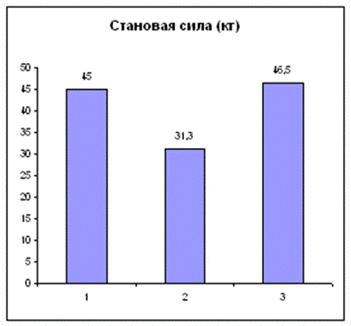 2. Сила мышц верхнего плечевого пояса (метание мяча) также имеет положительную динамику: результат улучшился в среднем на 1,9 м или на 25,6 %. Сила мышц ног (прыжки вверх, в длину с места) также имеет положительную тенденцию: результат улучшился на 28,5 см или на 34,6%. Показатели становой силы улучшились на 1,52 кг или на 32,7% (таблица 1,2).
