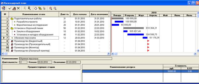 Следует отметить, что ввод информации о материалах можно производить любым из двух способов. Первый способ состоит в непосредственном вводе каждого из материалов в список с помощью щелчка правой кнопки мыши на поле списка и выбора команды «Добавить» (при этом автоматически формируется список материалов, представляемых в окне модуля «Материалы и комплектующие». При втором способе предварительно вводятся в модуле «Материалы и комплектующие» все требуемые комплектующие, а затем в карточке «Материалы» модуля «План производства» вводятся необходимые данные путем выбора из списка материалов и комплектующих. Результаты ввода данных для плана производства показаны на рис. 7.