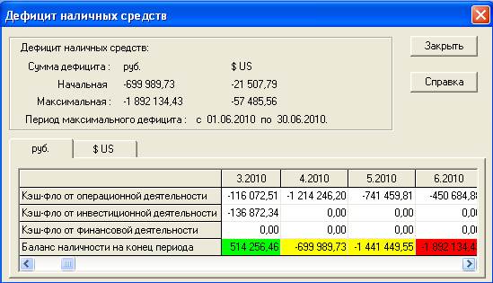 Рис. 9. Результаты расчета дефицита денежных средств.
