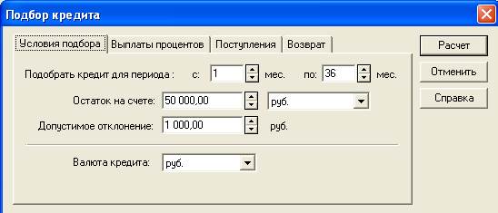 Рис. 10. Диалоговое окно «Подбор кредита».