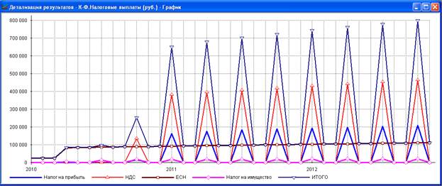 Из таблиц детализации результатов можно получить график выплаты налогов, показанный на рис. 14.