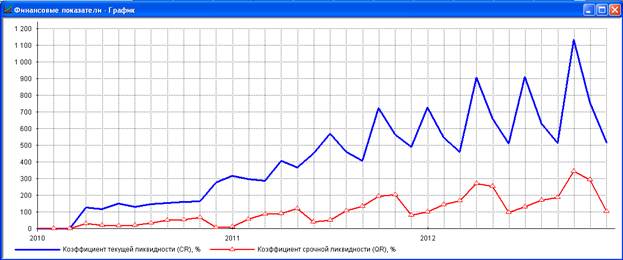 Результаты анализа основных финансовых показателей проекта (коэффициентов текущей, срочной ликвидности и рентабельности инвестиций) показаны на рис 15 и 16. Полученные значения удовлетворительны.