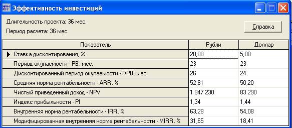 Рис. 17. Показатели эффективности инвестиций для проекта.