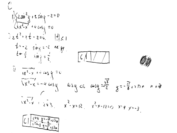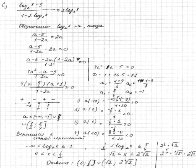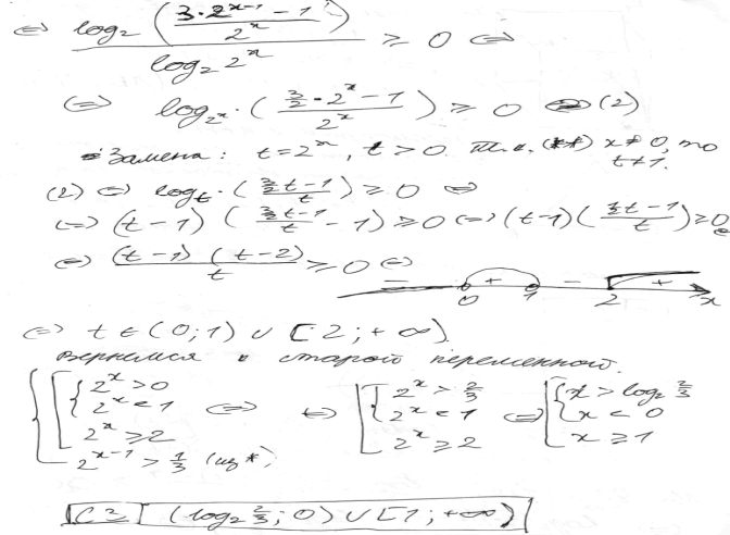ставить 2 балла, то за что же их (2 балла) ставить? Только за те тексты, в которых есть явная ссылка на неравенство , а ответ выписан именно, как множество?? В таком случае, очевидно, что максимальный балл за решение этой задачи получат лишь несколько процентов всех участников экзамена. Напомним, что в силу новой структуры ЕГЭ-2010 по математике, к выполнению задания С1 вполне может приступить около 60-70% всех выпускников, т.е. более полумиллиона учеников. Поэтому излишне жесткие критерии оценивания выполнения этого задания могут в целом по стране дать лишь отрицательный эффект. Другими словами, позиция разработчиков КИМ ЕГЭ-2010 состоит в том, что за решения №№1-3 нельзя ставит 0 баллов, не следует ставить 1 балл, и, тем самым, эти решения заслуживают оценки в 2 балла.