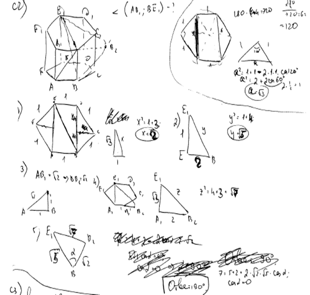 Однако, оценить это решение в 0 баллов недопустимо: ведь автор для обеих конфигураций практически верно разобрал все геометрические детали и (дважды) ошибся лишь в заключительном шаге.