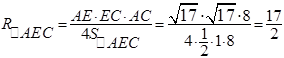 – радиус окружности, который находим по теореме синусов, применённой к треугольнику : .
