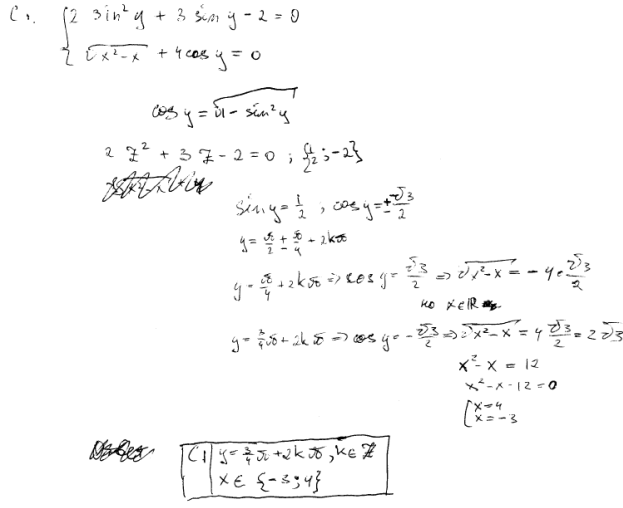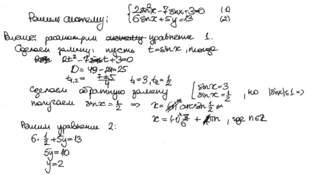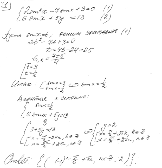 К каждому из приведенных решений №№1-3 могут быть предъявлены в той или иной мере существенные претензии. Например, в решениях №1 и №2 нет никакого упоминания о множестве значений синуса, т.е., формально, не обосновано, почему отброшен случай . В решении №1 много ненужных слов, а решение №3, как это принято называть, «не рационально». В решениях №№2 и 3 в ответ выписаны, формально, уравнения, а не множество решений системы уравнений, да и в решении №1 полагалось бы написать . В решении №3 запись , вообще говоря, неясно, что означает, и корректнее следовало бы писать .