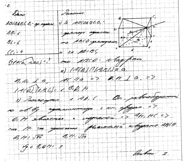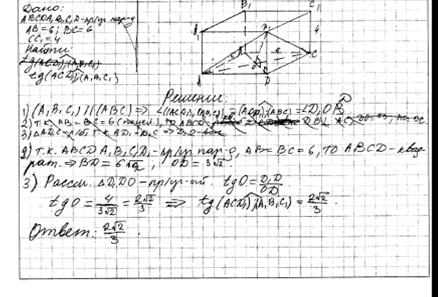 , а находим из теоремы косинусов, применённой к треугольнику : .