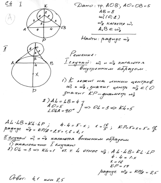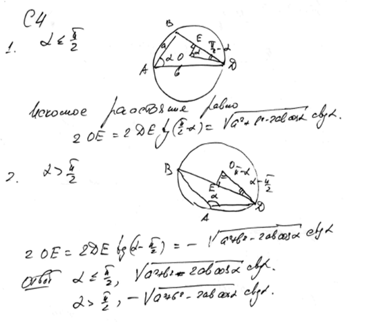 Рассмотрим еще одну планиметрическую задачу уровня сложности С4 и примеры оценивания ее выполнения.
