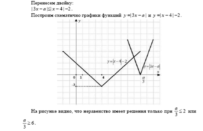 | Хотя бы в одном из случаев раскрытия модуля составлено верное условие на параметр, либо построен верный эскиз графика функции в целом