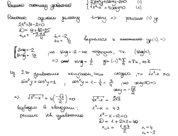 Обсуждения решений этой задачи показали, что многие учителя, кроме того, считают совершенно необходимым введение новой переменной , явное выписывание дискриминанта и т.д.