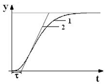 Переходные функции любых динамических объектов имеют вид инерционного или колебательного процессов. Это позволяет математически описать их как звенья 2-го порядка. Поэтому задача идентификации для них формулируется следующим образом: определить параметры (собственную частоту и коэффициент затухания ) системы 2-го порядка, к которой может быть «сведено» описание заданного объекта по схожести переходного процесса. Под «схожестью» обычно понимают минимум интеграла (или суммы в дискретных точках) от квадрата разности переходных функций объекта и модели.