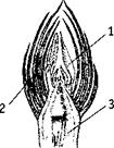 С51. Почему почку считают зачаточным побегом? Какие части листовой почки обозначены на рисунке цифрой 1? Какую роль они играют в жизни почки?