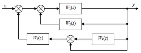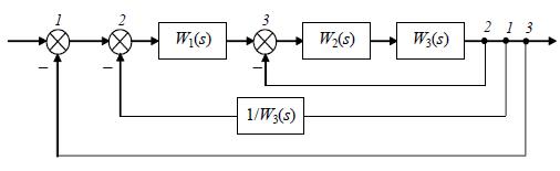 Для записи передаточной функции сложной структурной схемы ее необходимо преобразовать в соответствии с правилами преобразования структурных схем. Чтобы развязать перекрестные связи, перенесем узел 1 через звено с передаточной функцией W3