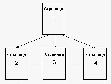 Страница 1 - начало. При последовательном изложении с нее надо перейти на страницу 2, далее - на страницу 3, и, наконец, на страницу 4. Однако может потребоваться с первой страницы сразу попасть на третью или четвертую. И хорошо, если бы было возможно возвращаться обратно на предыдущую страницу, перепрыгивать со второй страницы сразу на четвертую и т.д.