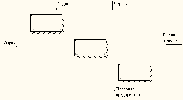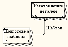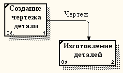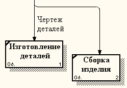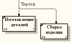 , когда выход вышестоящей работы направляется на управление нижестоящей. Связь по входу показывает доминирование вышестоящей работы. Данные или объекты выхода вышестоящей работы не меняются в нижестоящей. На рис.10 стрелка "Чертеж" связывает работы "Создание чертеже детали" и "Изготовление детали", при этом чертеж не претерпевает изменений в процессе изготовления деталей.