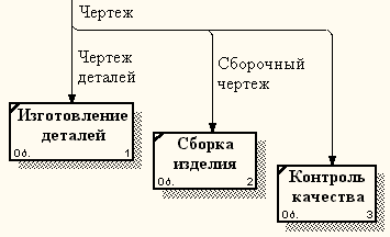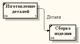 , когда стрелка выхода вышестоящей работы (далее - просто выход) направляется на вход нижестоящей, например, на рис.9 стрелка "Детали" связывает работы "Изготовление деталей" и "Сборка изделия".