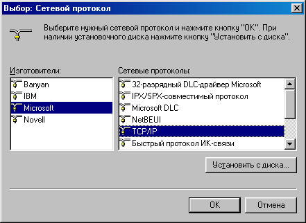 и выбираем Microsoft - TCP/IP.