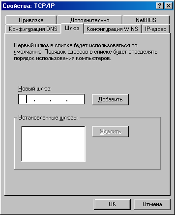 Вписываем IP-номер шлюза, нажимаем кнопку "Добавить", чтобы этот номер появился в белом окошке "Установленные шлюзы", и жмем OK.