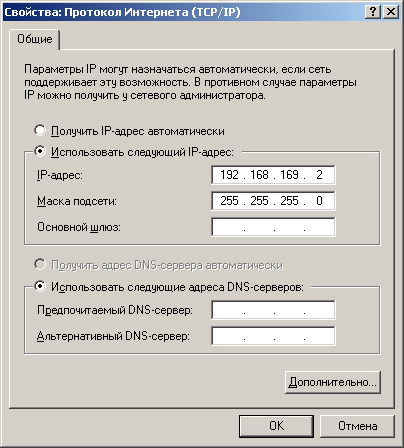 Для работы в Internet нужно еще прописать один или несколько DNS. Это делается точно также, как был задан шлюз, поэтому картинку не приводим.