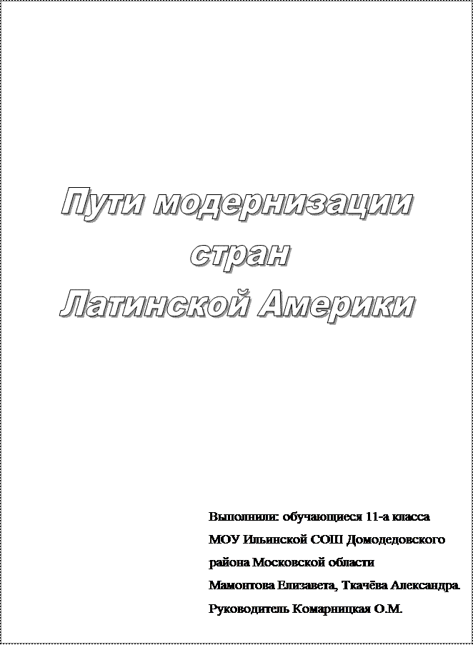 В своей работе мы решили рассмотреть пути модернизации стран Латинской Америки. Потому что, на наш взгляд, события периода XIX-XX вв. оказали огромное влияние на развитие национально-освободительного движения народов Латинской Америки. И показали возможность развития стран региона без опеки США.
