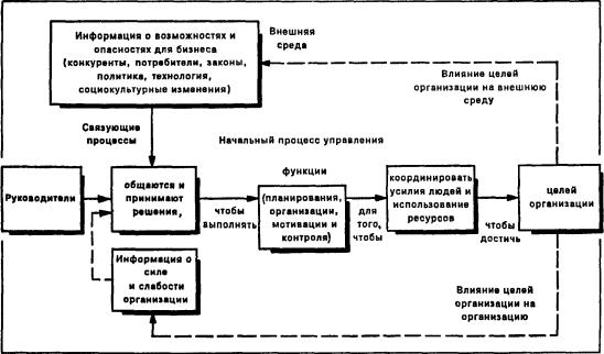 Процесс управления осуществляется путем постоянного анализа информации о фактических значениях параметров, характеризующих текущее состояние системы, и принятия на этой основе решений о воздействии на систему. С точки зрения кибернетики управление есть понятие информационное. Если учесть, что функционирование предприятия возможно при наличии ресурсной, организационной, технологической, сбытовой составляющих, то должны быть и управленческие структуры (информационная составляющая), как, например, кадровая служба, ответственные за работоспособность каждой их них. Собственно управленческий процесс обеспечивается за счет реализации специфических комплексов задач.
