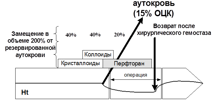 Предлагаемый нами вариант продвинутой острой нормоволемической гемодилюции с использованием перфторана как компонента восполнения объема предварительно резервированной аутокрови является одной из гемотрансфузионных альтернатив и отвечает ее трем основным критериям: он прост, эффективен, безопасен и, кроме того, оправдан фармако-экономически [8].