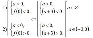 -(а+1)х+а+3 принимал в точке х = 0 отрицательное или положительное значение, в зависимости от направления ветвей параболы. Графическая интерпретация данной задачи: