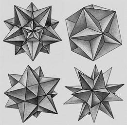 Евклида. Изучение платоновых тел и связанных с ними фигур продолжается и поныне. И хотя основными мотивами современных исследований служат красота и симметрия, они имеют также и некоторое научное значение, особенно в кристаллографии. Кристаллы поваренной соли, тиоантимонида натрия и хромовых квасцов встречаются в природе в виде куба, тетраэдра и октаэдра соответственно. Икосаэдр и додекаэдр среди кристаллических форм не встречаются, но их можно наблюдать среди форм микроскопических морских организмов, известных под названием радиолярий. [1]