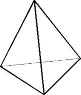 Тетраэдр составлен из четырех равносторонних треугольников. Каждая его вершина является вершиной трех треугольников. Сумма плоских углов при каждой вершине равна 180 градусов. Таким образом, тетраэдр имеет 4 грани, 4 вершины и 6 ребер.