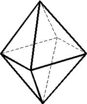 Октаэдр составлен из восьми равносторонних треугольников. Каждая его вершина является вершиной четырех треугольников. Сумма плоских углов при каждой вершине равна 240 градусов. Таким образом, октаэдр имеет 8 граней, 6 вершин и 12 ребер.
