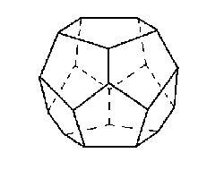 Додекаэдр составлен из двенадцати равносторонних пятиугольников. Каждая его вершина является вершиной трех пятиугольников. Сумма плоских углов при каждой вершине равна 324 градусов. Таким образом, додекаэдр имеет 12 граней, 20 вершин и 30 ребер.